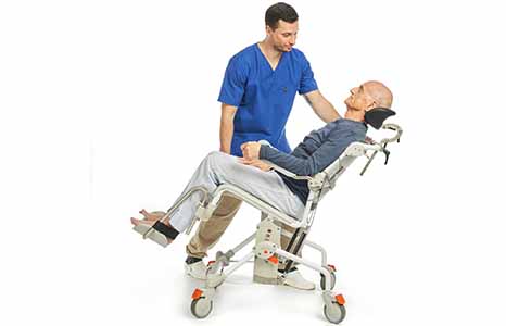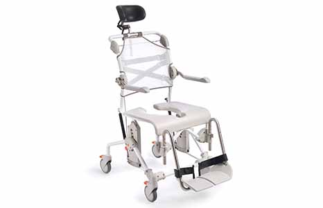 Pyörällinen, kallistettava Swift Mobil Tilt suihku- ja WC-tuoli on korkeussäädettävä ja sen avulla käyttäjä kokee olonsa turvalliseksi suihku- ja WC-toimissa. Pehmeä selkänoja muotoutuu käyttäjän selän mukaan, mikä tuntuu turvalliselta ja miellyttävältä taakse kallistetussa asennossa. Jalkalaudat ovat hivenen kaarevat ja tukevat näin hyvin jalkoja. Ylös kääntyvät käsinojat ja sivulle kääntyvät jalkatuet helpottavat siirtymistä tuoliin ja siitä pois. Lukittavat pyörät. Vakiovarusteina selkänoja, niskatuki, istuin, käsinojat, jalkatuet erillisine jalkalautoineen sekä 4 kpl jarrullisia pyöriä. Materiaaleina teräs, polypropeeni ja polyamidi. Väri vaaleanharmaa.